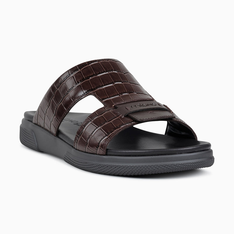 HALSTON MENS LEATHER SANDALS- DK.BROWN