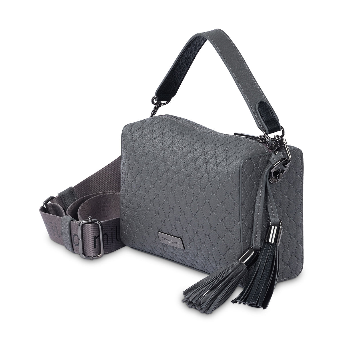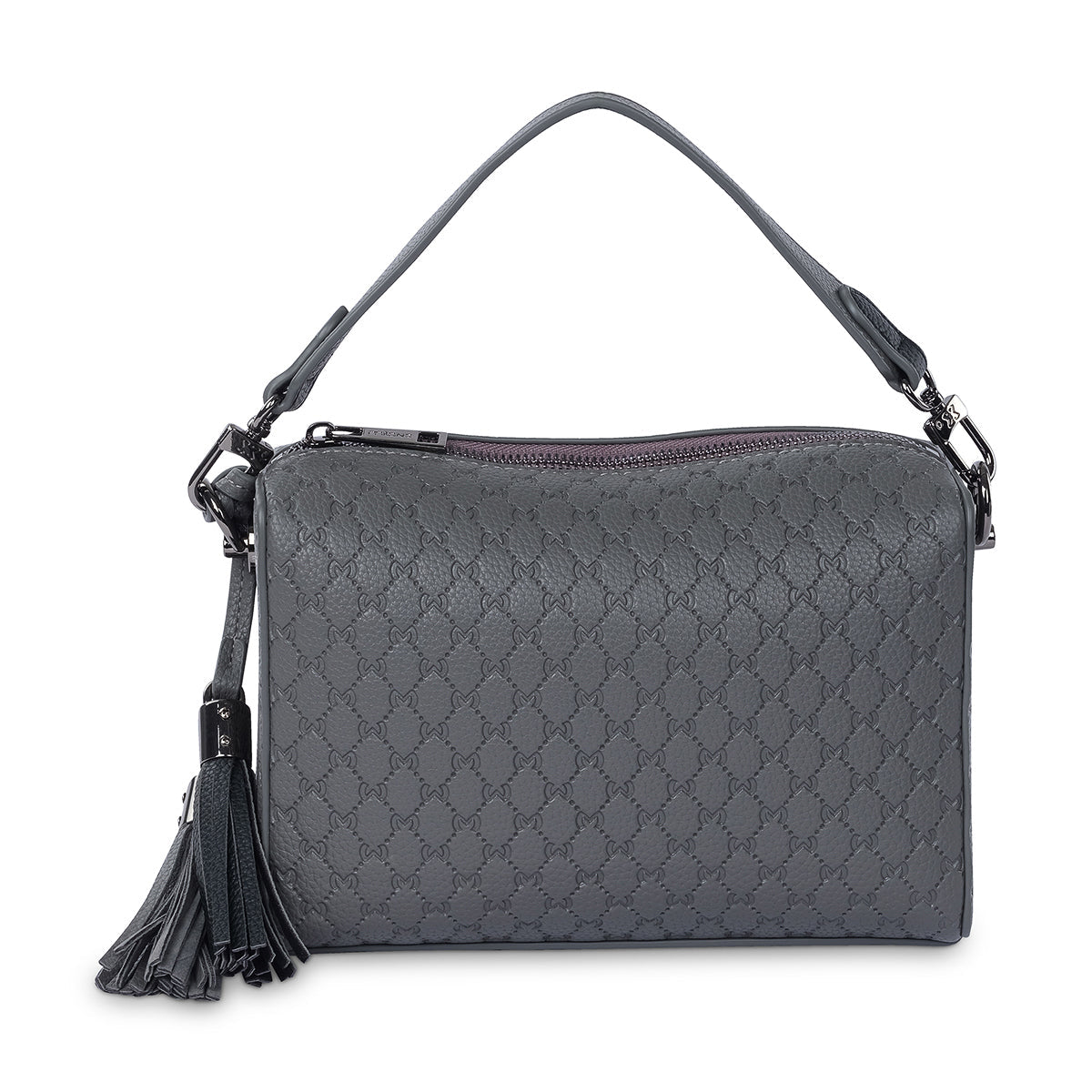 Stay organized and stylish on the go with the 'Lauren' crossbody bag. Crafted in a sophisticated grey, this bag features an all-over embossed pattern, a comfortable logo-print strap, and charming fringe details. With its secure zip closure and sleek design, it's ideal for a modern, on-the-go lifestyle.