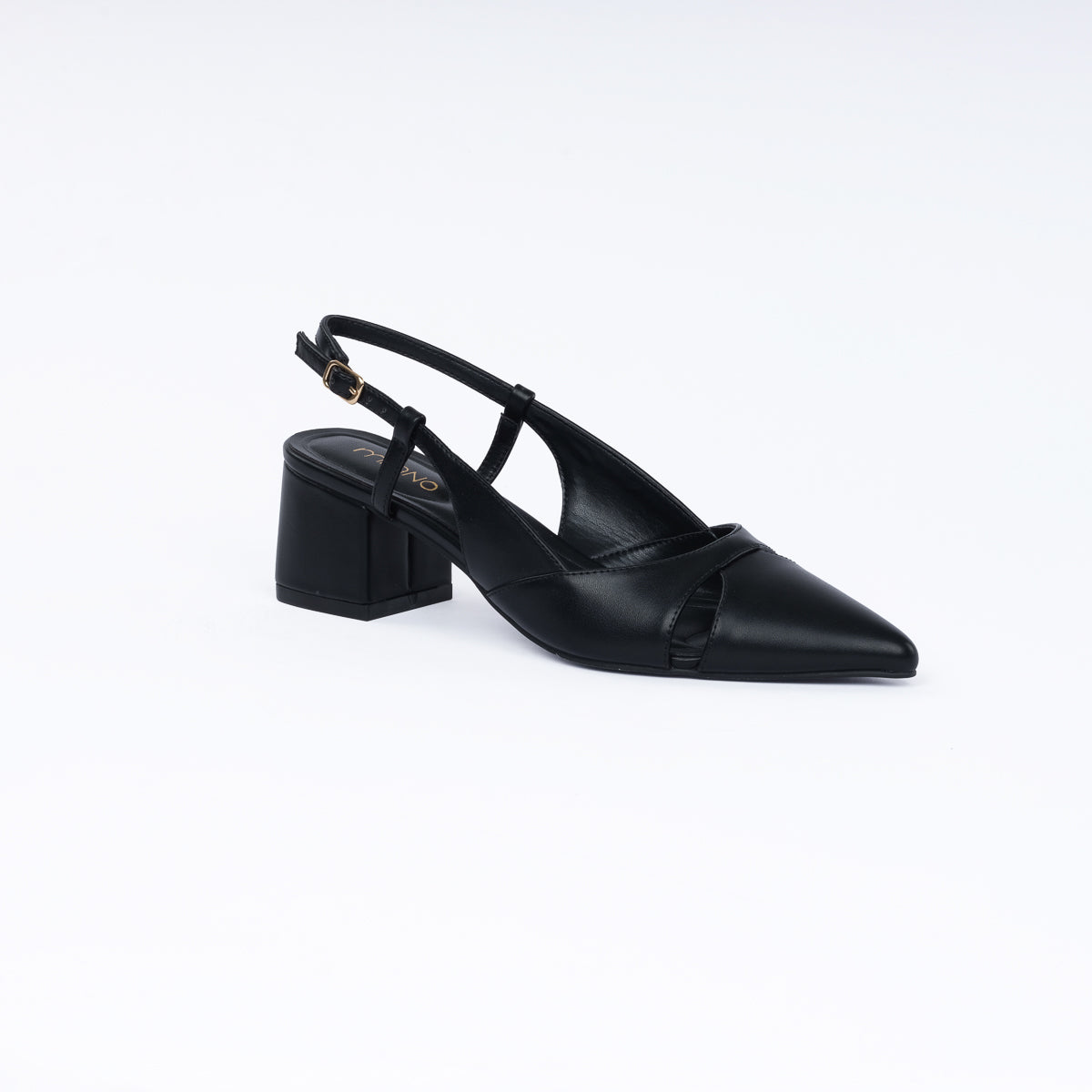 These elegant shoes with a sharp pointed toe, and chic side cut-outs for a modern twist. An adjustable slingback strap ensures a perfect fit, while the comfortable block heel offers stable elevation, making them an ideal and versatile choice for both office wear and special occasions.