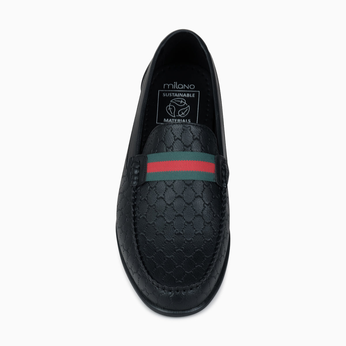 Milano's Ecolear moccasins are crafted from sustainable materials alongside with the monogram embossing. The style features a signature green-and-red striped grosgrain band across the instep for a timeless, ease of wear inspired look. Wear this style effortlessly for a relaxed yet refined look.