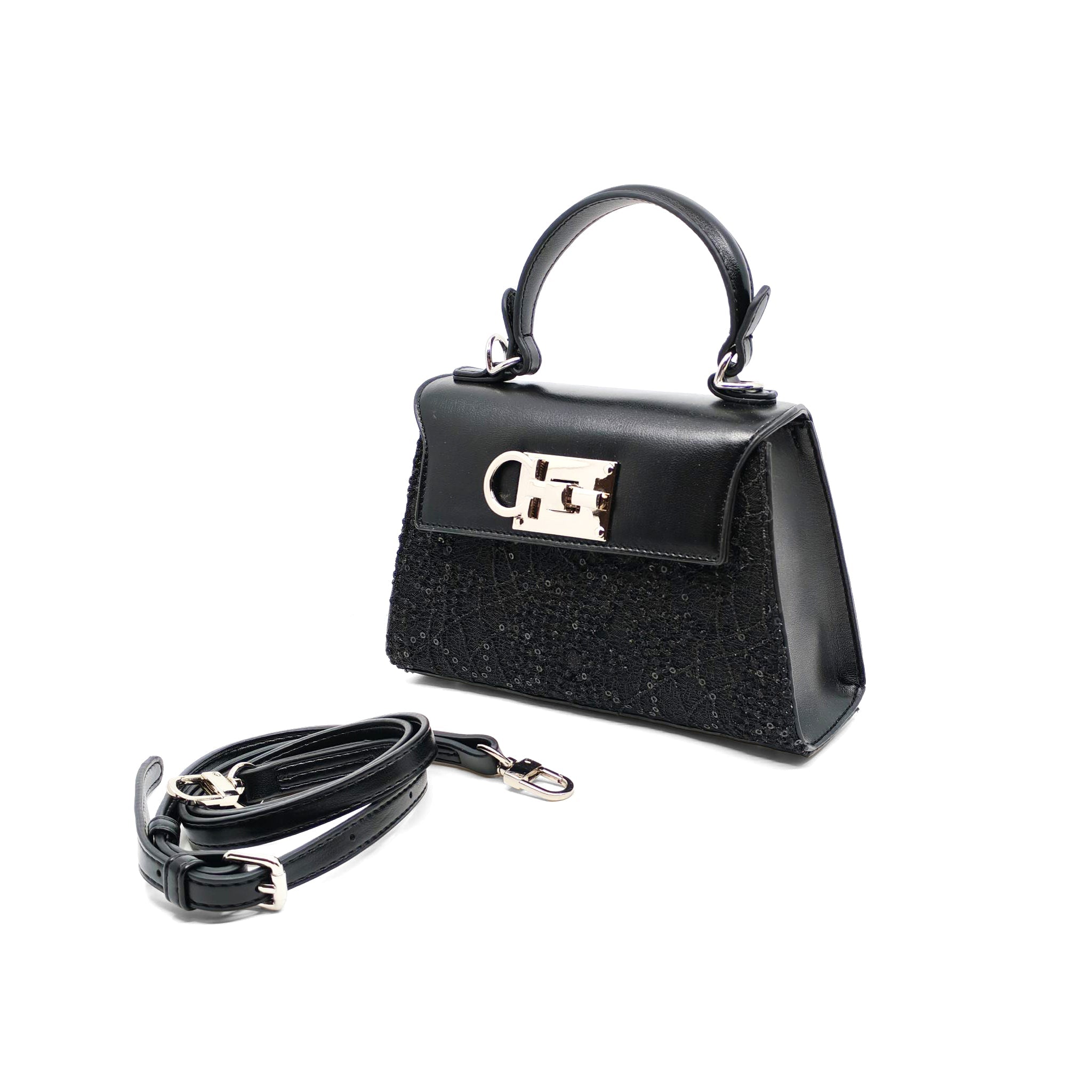 Make a statement with the Courteney Mini Tote—a chic blend of elegance and modern design. Featuring a structured silhouette with a textured finish and a sleek flap closure accented by polished silver hardware, this compact bag is perfect for evening outings or special occasions. Its top handle adds a classic touch, while the size makes it easy to carry your essentials in style