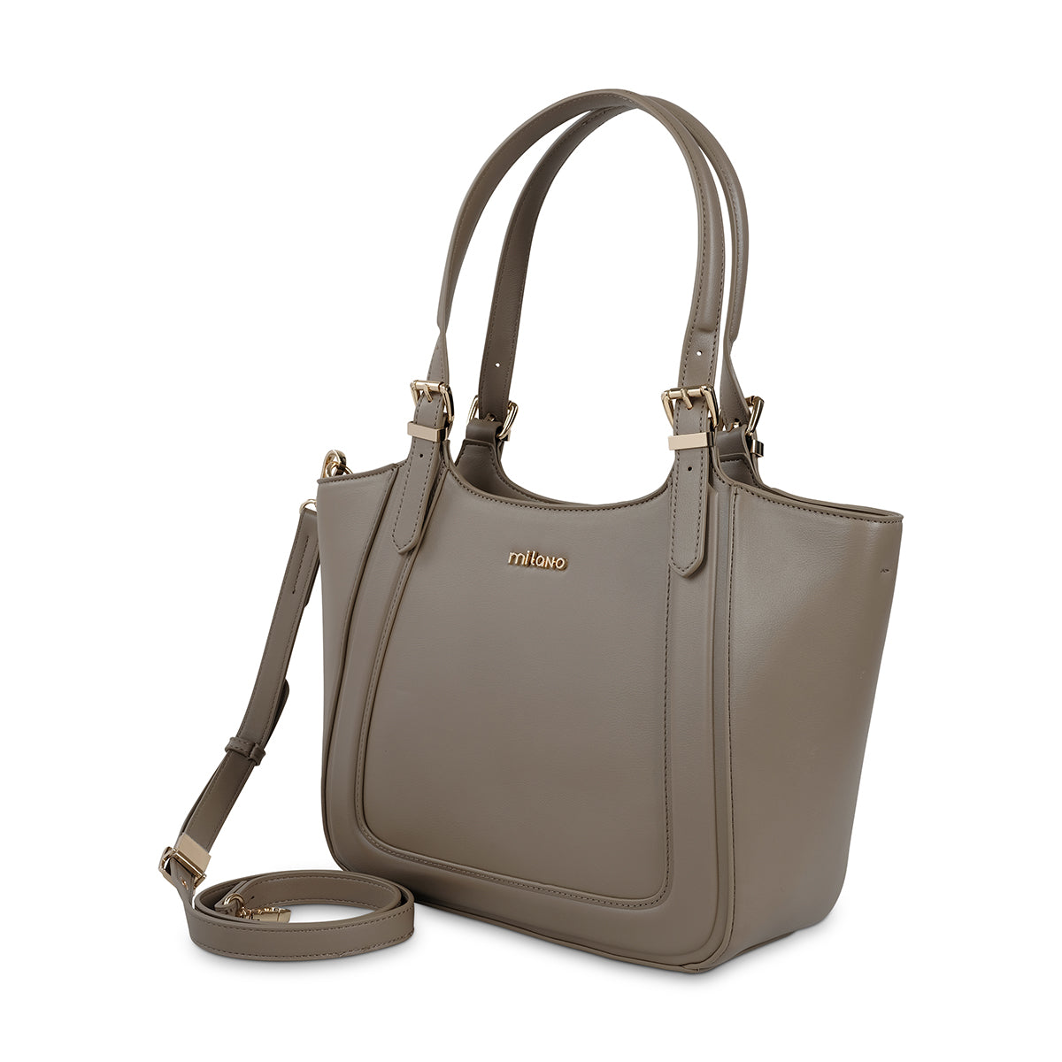 This versatile taupe handbag showcases a sleek, modern design with clean lines, our signature Milano branding and subtle detailing. Equipped with a top handle and a spacious multi-compartment interior, it offers both style and functionality for everyday use. Matching Items are available to complete your look, making this bag an effortless addition to any wardrobe. e