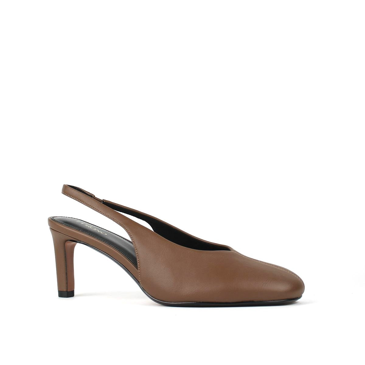 Elegant slingback pumps feature a square toe and a flared block heel for a modern take on a classic silhouette. The elasticated strap ensures a secure and comfortable fit, while the sleek design makes them versatile for both work and evening wear.