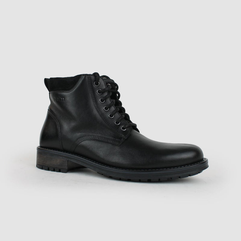RUNDLE MENS LEATHER BIKER BOOTS-BLACK