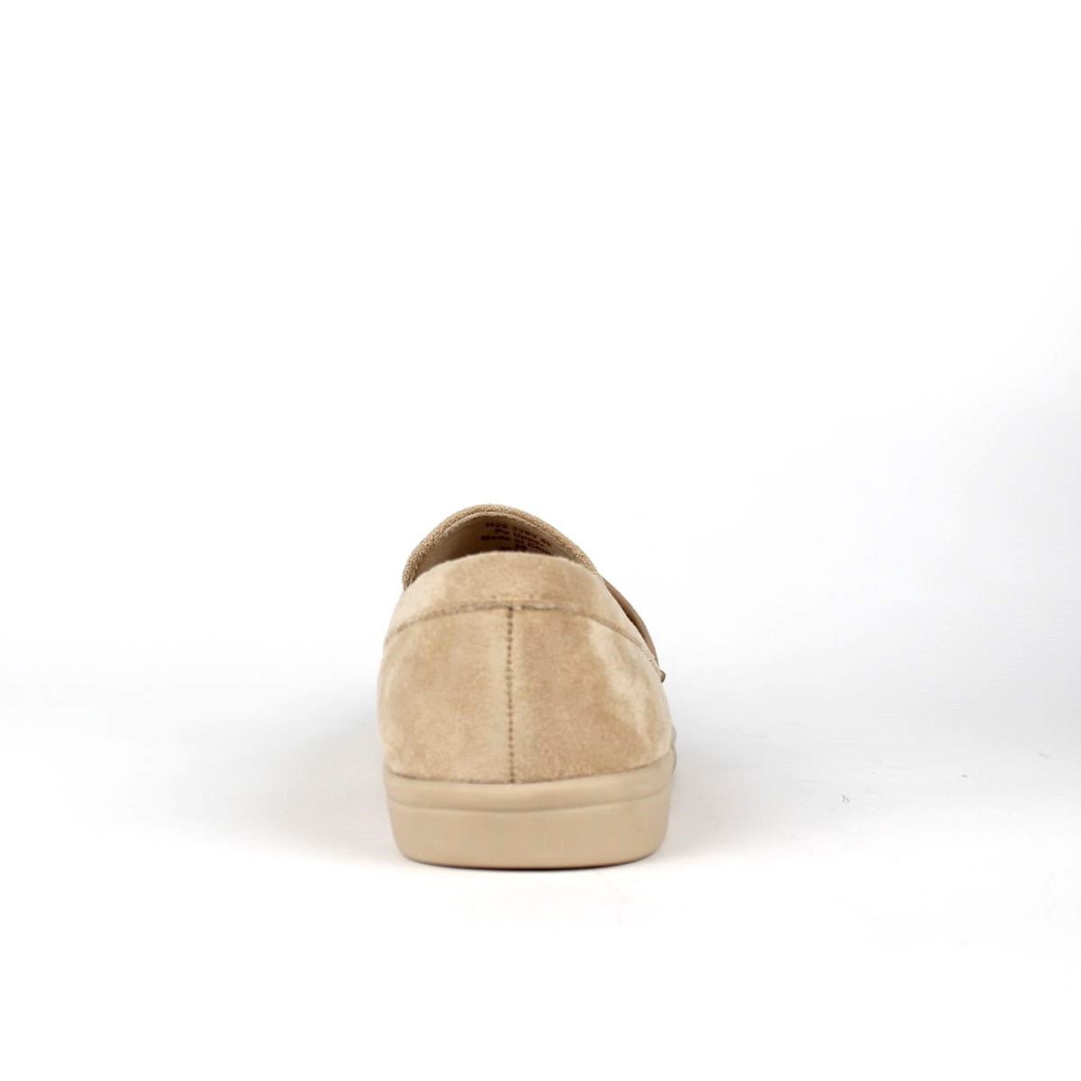 Lyra penny loafers, the shoes are made of a suede-like material with a slightly textured or patterned finish. Their minimalist design and low-profile sole make them a versatile choice for both casual and smart-casual attire.