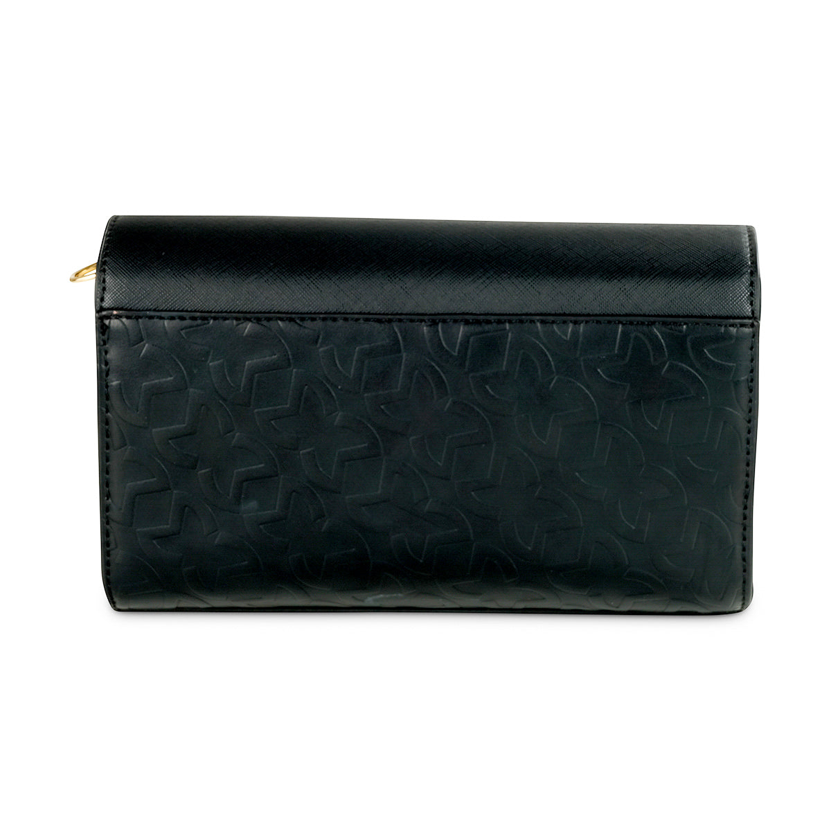 Elevate your evening or daytime look with our sophisticated black crossbody bag. This versatile piece features a sleek upper flap adorned with a metallic "Milano" logo, beautifully contrasted by a uniquely textured lower half with an intertwining pattern. Complete with a chic gold-tone chain-detail strap, it's perfect for hands-free