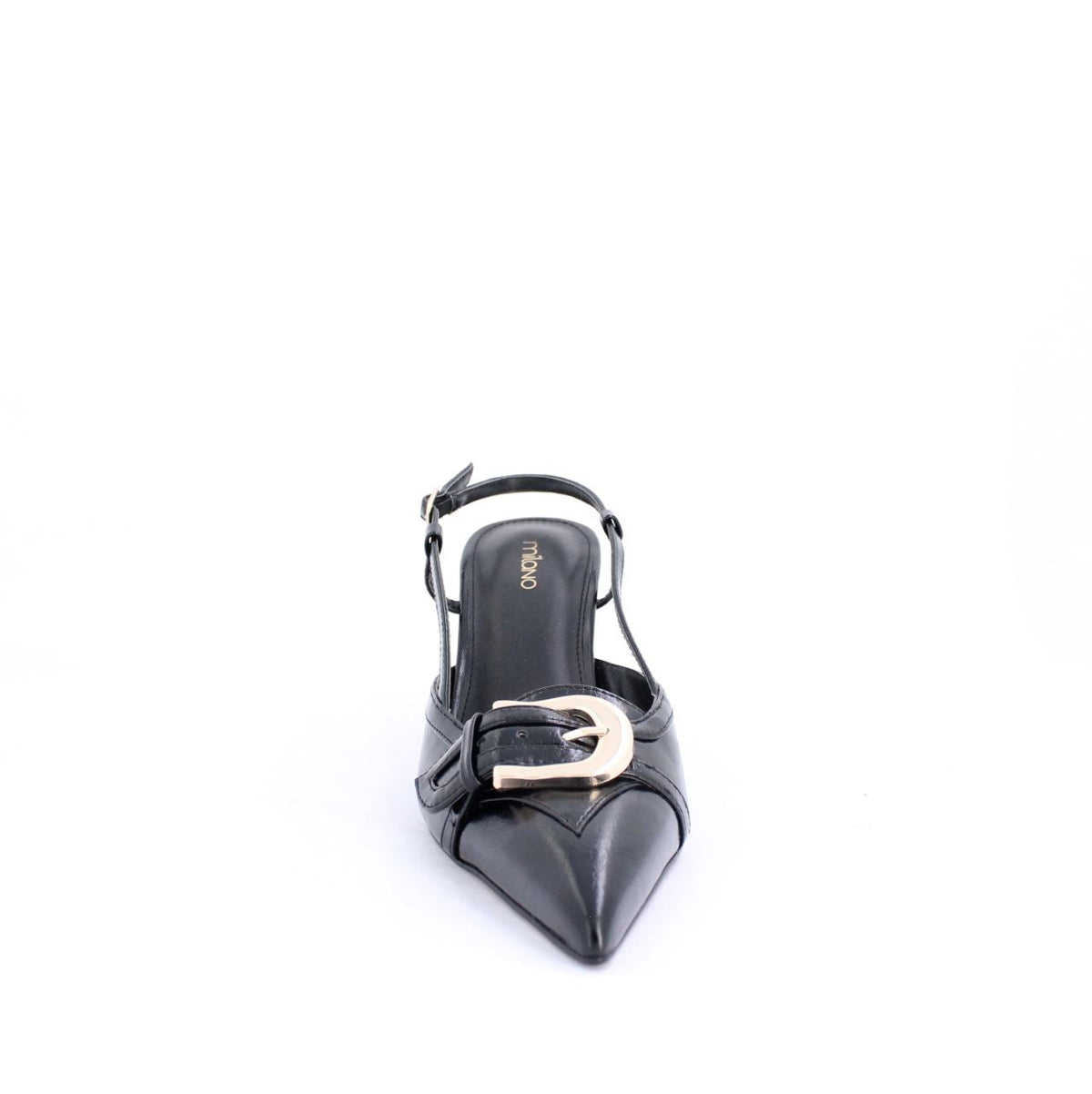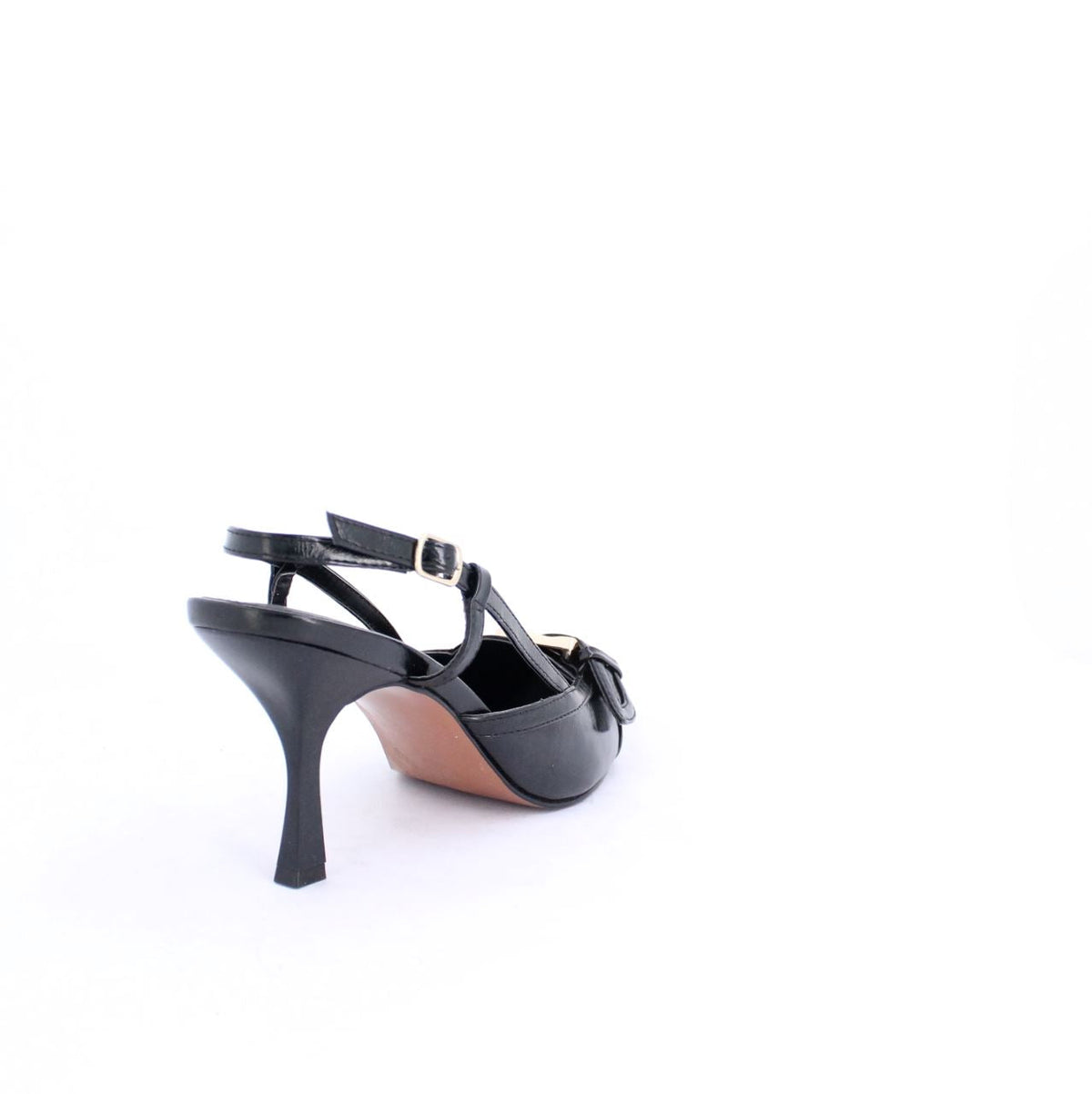 Ambers is a classic and elegant slingback heeled shoe with a pointed toe. Features with a detailed buckle belt strap on the vamp, adding a feminine and sophisticated touch. The slim, medium-height heel enhances its refined aesthetic, making this shoe perfect for formal events, professional attire, or upscale casual looks. Its design strikes a balance between stylish detail and timeless elegance.