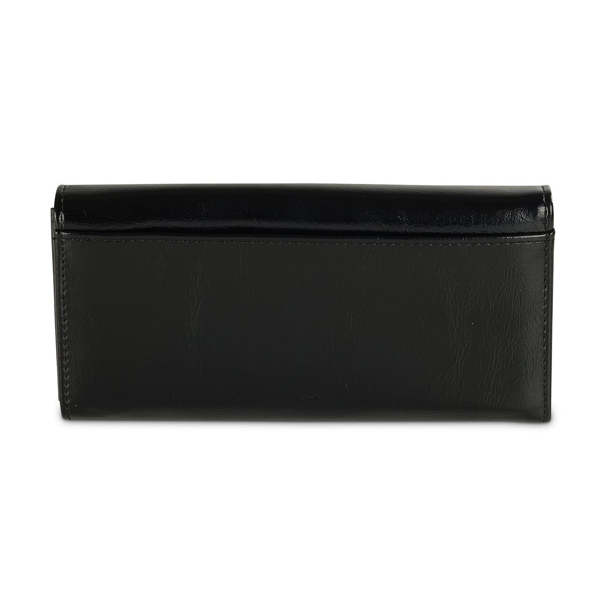 Keep your essentials organized in sleek style with our black long wallet. Crafted from a smooth, premium material, this classic design features a convenient flap closure adorned with a distinctive metallic "Milano" logo. Inside, find ample space for cards, cash, and coins, making it an everyday essential.