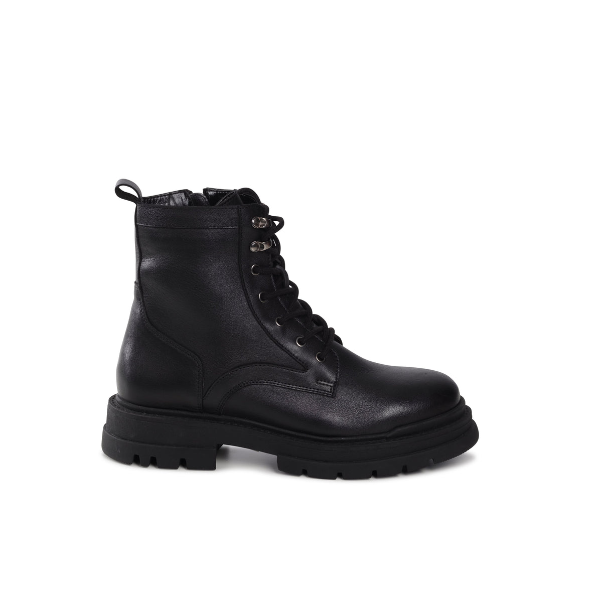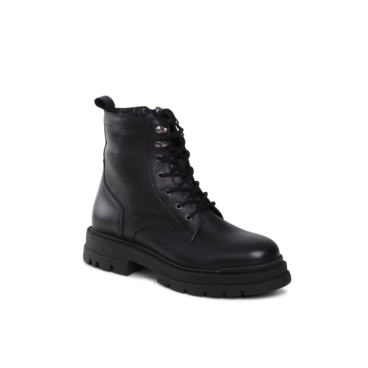 Asli, combat boot with a clean and modern design. The boot has a smooth leather finish and metal eyelets for the laces, adding durability and a polished aesthetic. The thick, lugged sole offers excellent grip and rugged appeal, making it suitable for both functional and fashionable wear. Ideal for both everyday use and outdoor activities.
