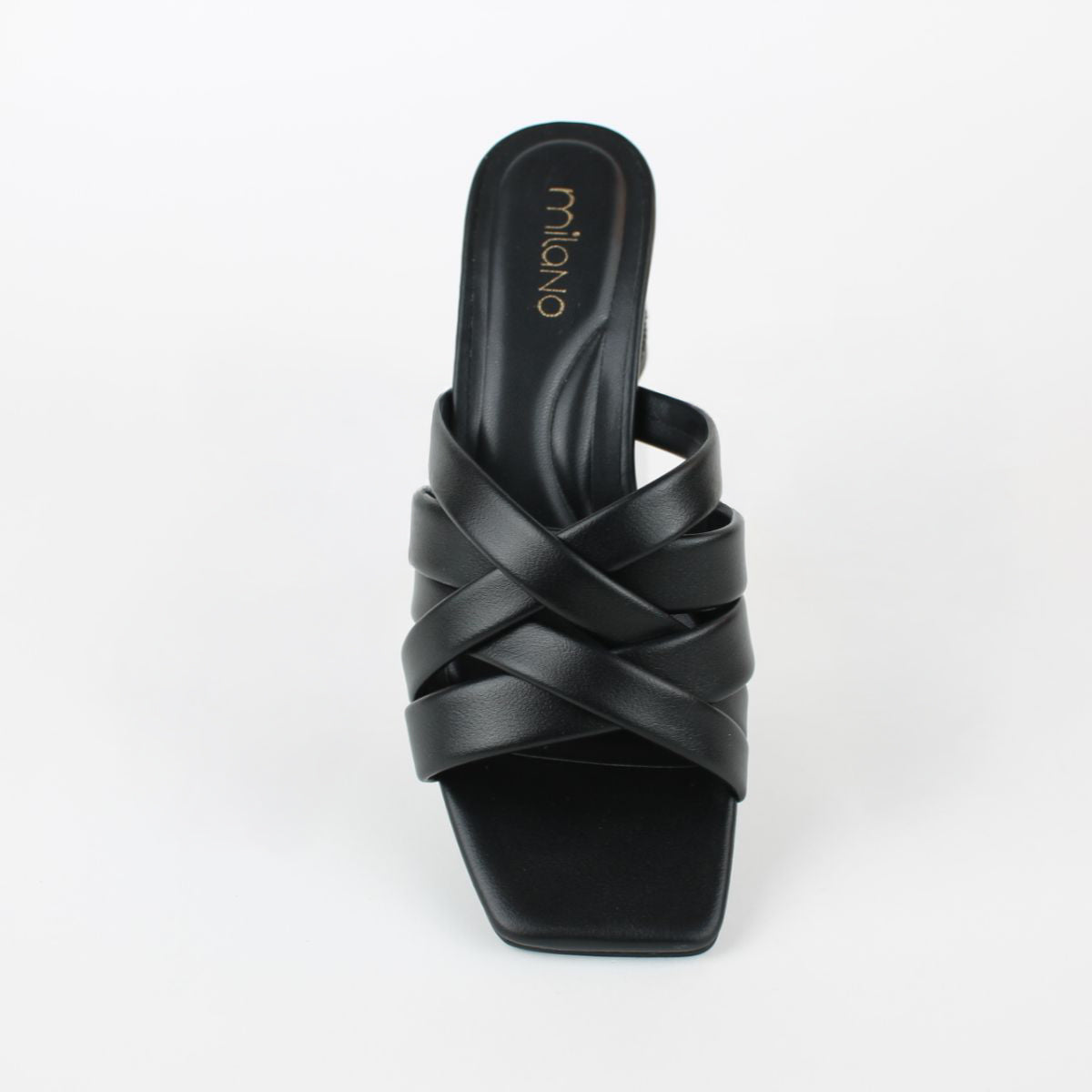 Woven Block Heel Sandal. This modern slide sandal features a bold, intricately woven upper that adds a touch of texture to any outfit. Designed with a comfortable square toe and a sturdy, textured block heel, this mule is the perfect blend of trend-forward style and all-day comfort.