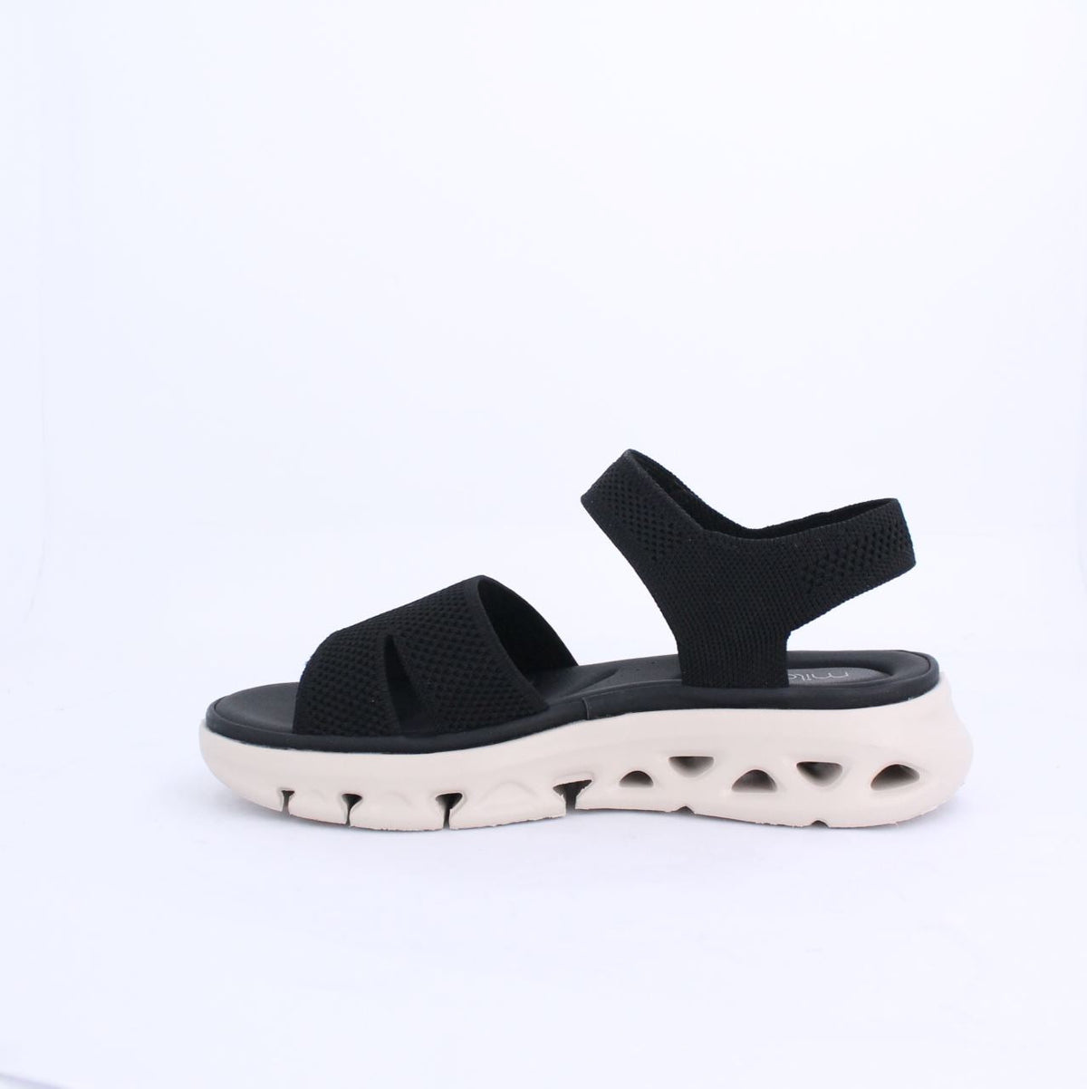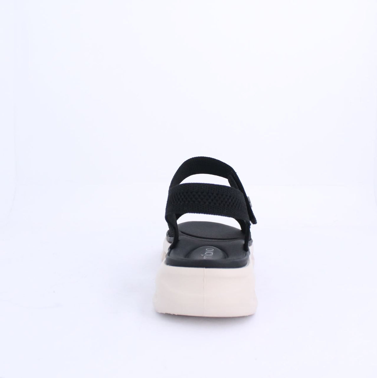 Awra sporty sandal designed for comfort and functionality. Upper straps features a knit for breathability and a stylish look. The lightweight sole features a unique design with multiple cutouts, likely for enhanced flexibility. This type of sandal is suitable for casual wear and activities that require both comfort and support.