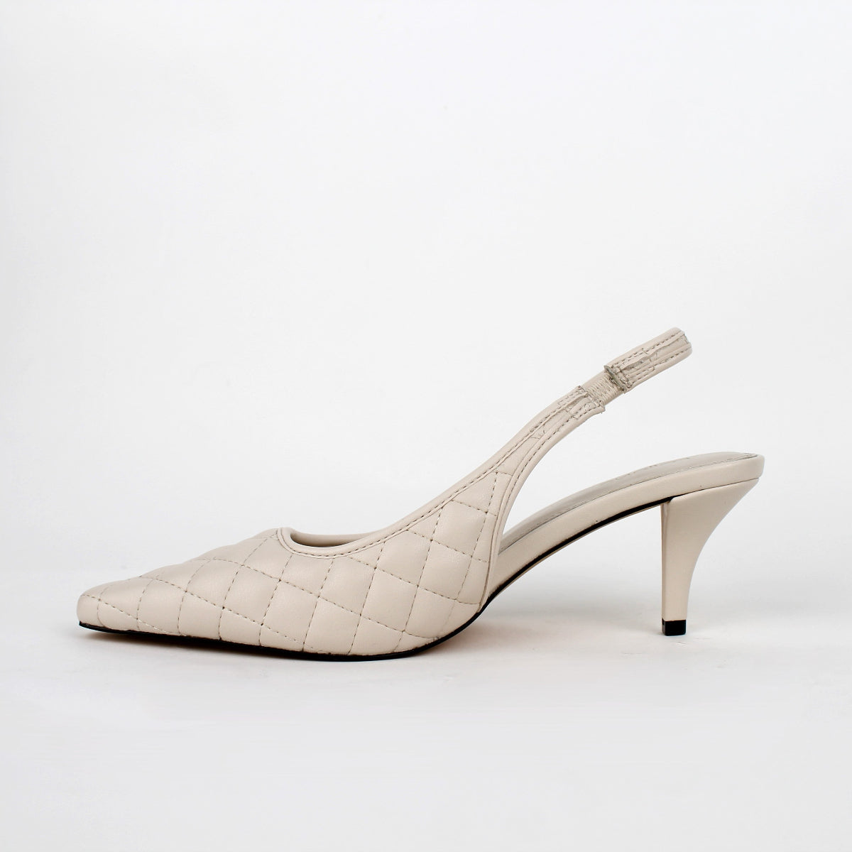 Elevate your look with these sophisticated slingback pumps. Crafted with a soft quilted upper, they feature a classic pointed toe and a sleek stiletto heel for a timeless silhouette. The elasticated slingback strap ensures a secure and comfortable fit, making them a versatile choice for any occasion, from the office to special events.