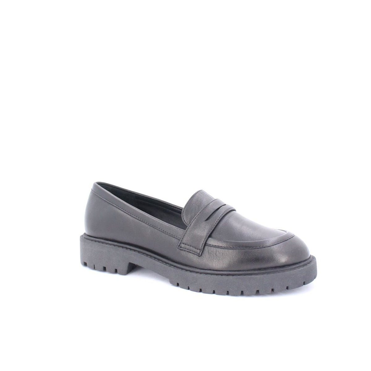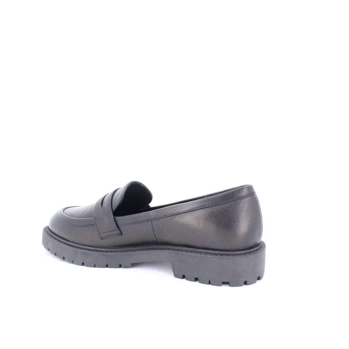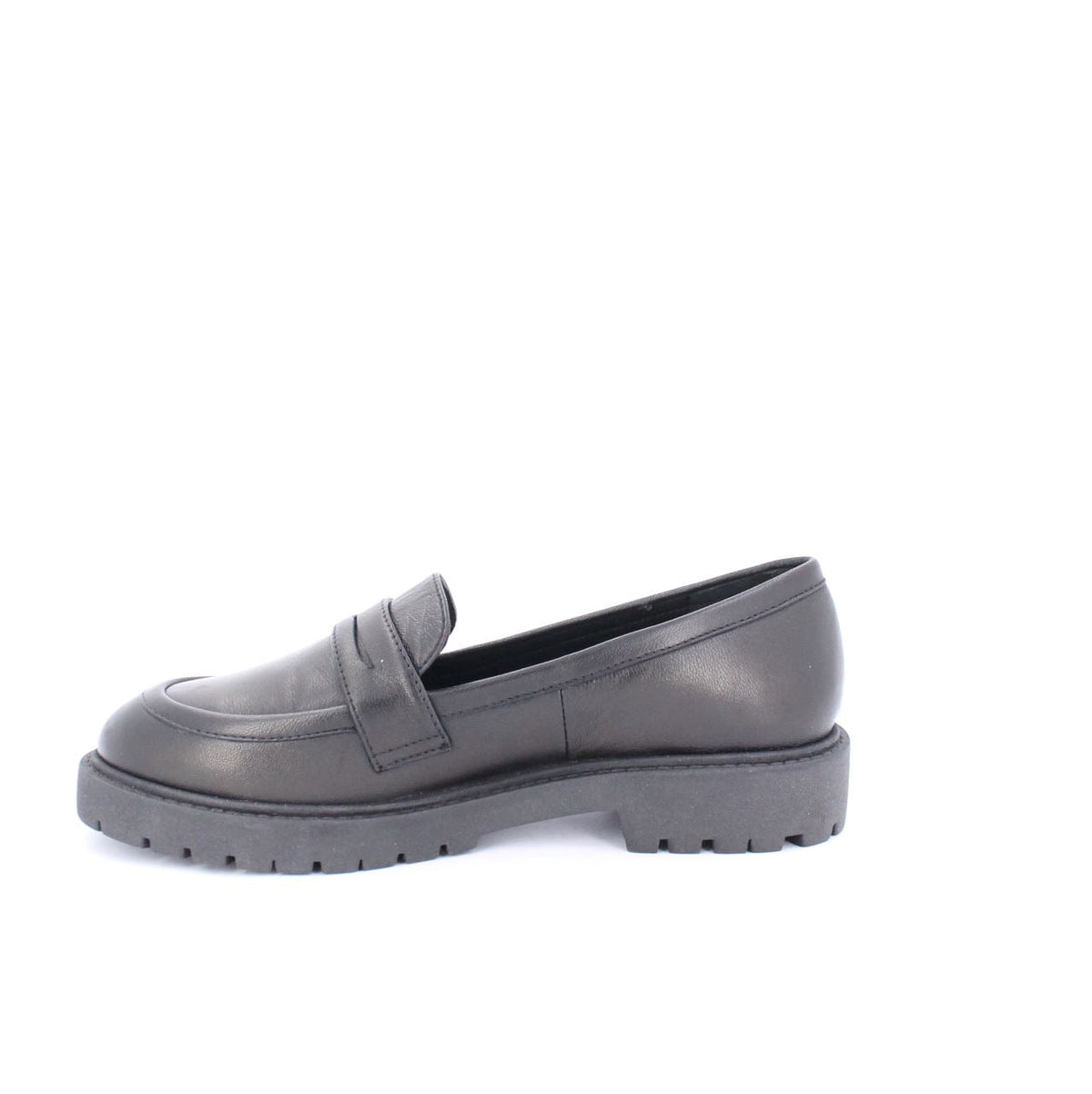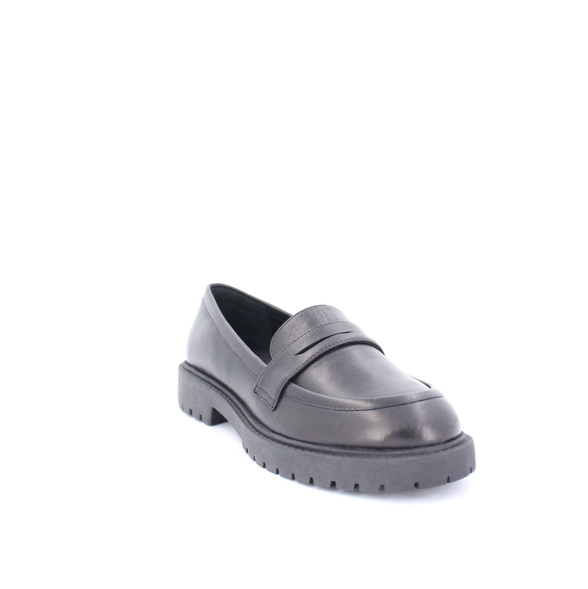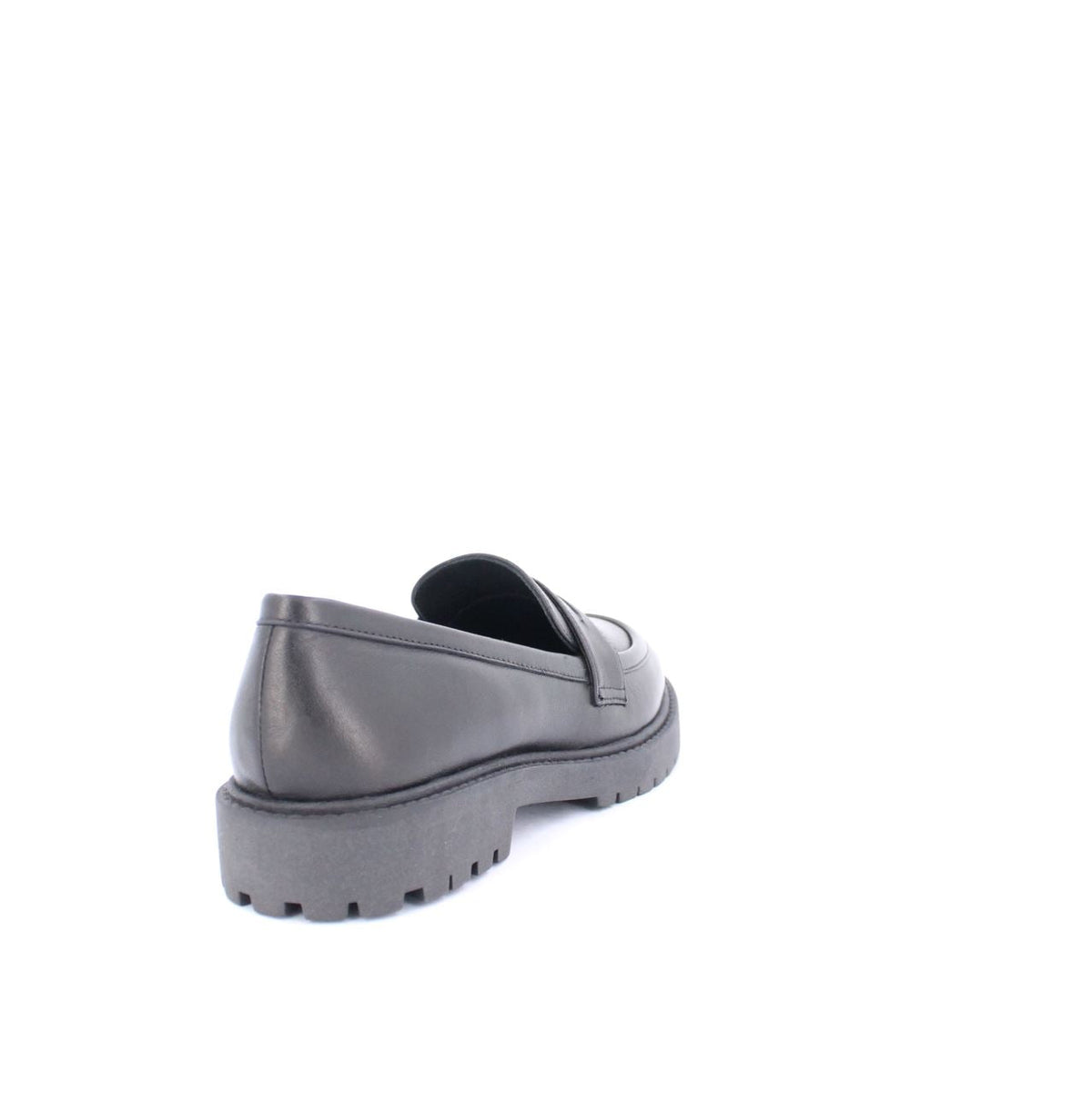 A loafer with a modern and rugged touch. It has a classic penny loafer design with a strap across the vamp and a smooth, structured upper made of leather material. TThese features a lugged sole, which adds a contemporary, chunky aesthetic while ensuring durability and excellent grip. This shoe is a stylish option for casual or smart-casual occasions, combining traditional design elements with a bold and functional sole.