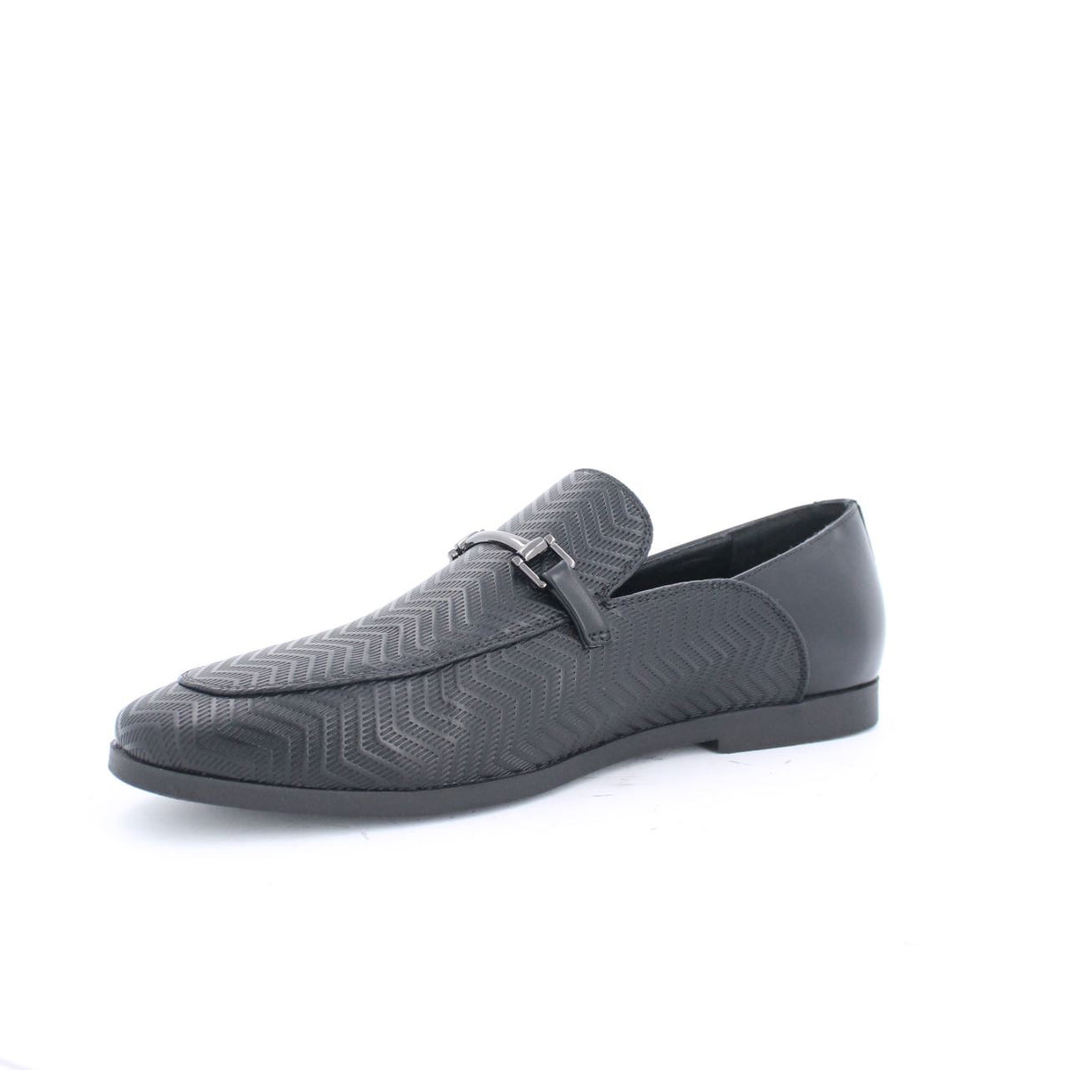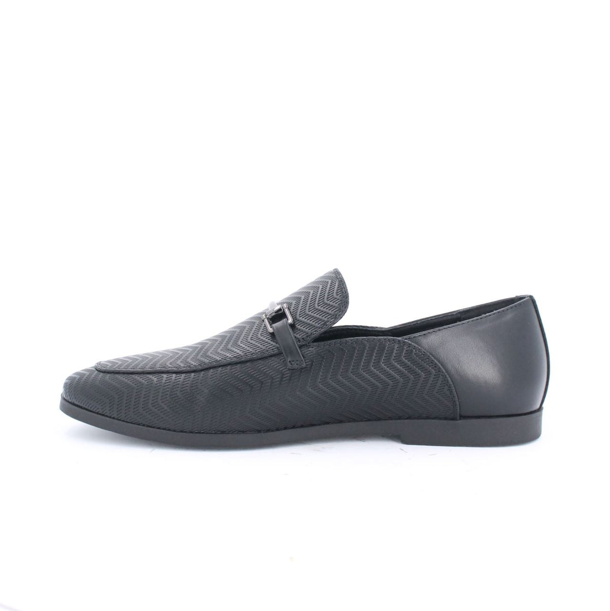 Elias, an almond toe loafer for your formal and casual attire. With a textured design on the vamp, this signature style has a slender shape and is finished with a metalic trim detail.