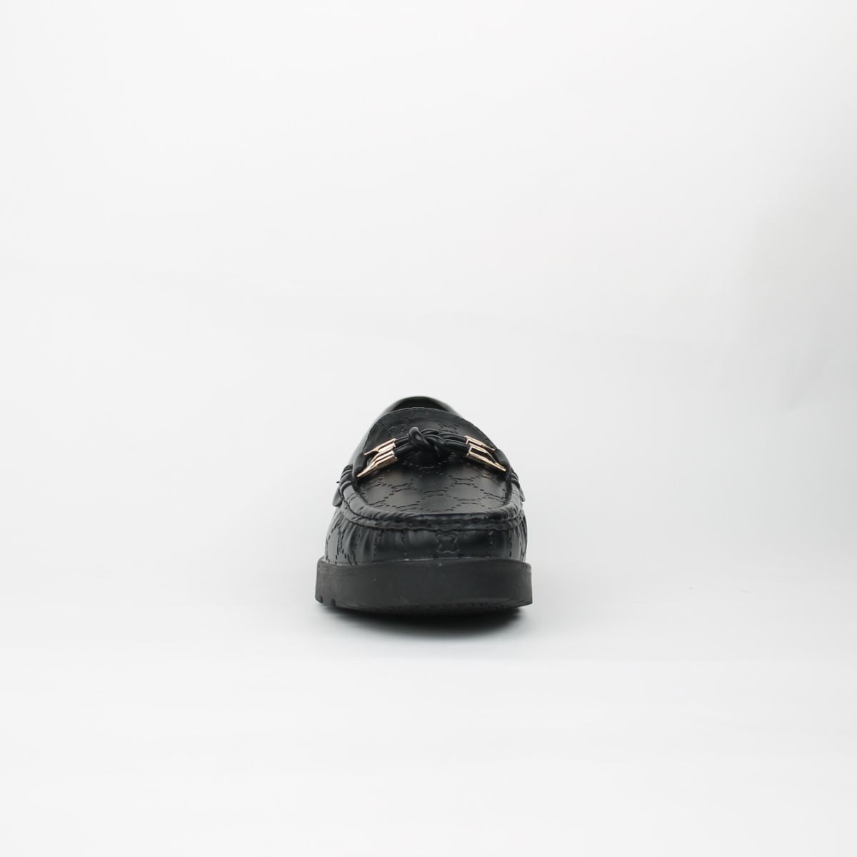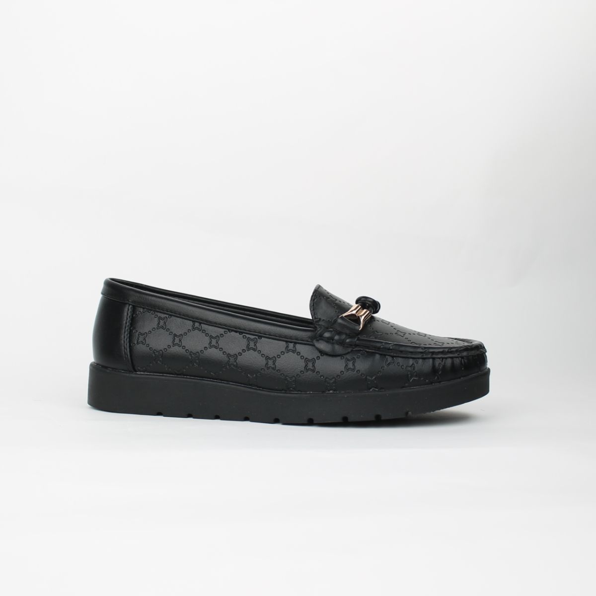 Stylish and comfortable loafers. Featuring a subtle embossed "M' for added texture. It has a comfortable and supportive black flatform sole, providing a slight elevation. Perfect for smart-casual occasions, or adding a polished finish to any ensemble