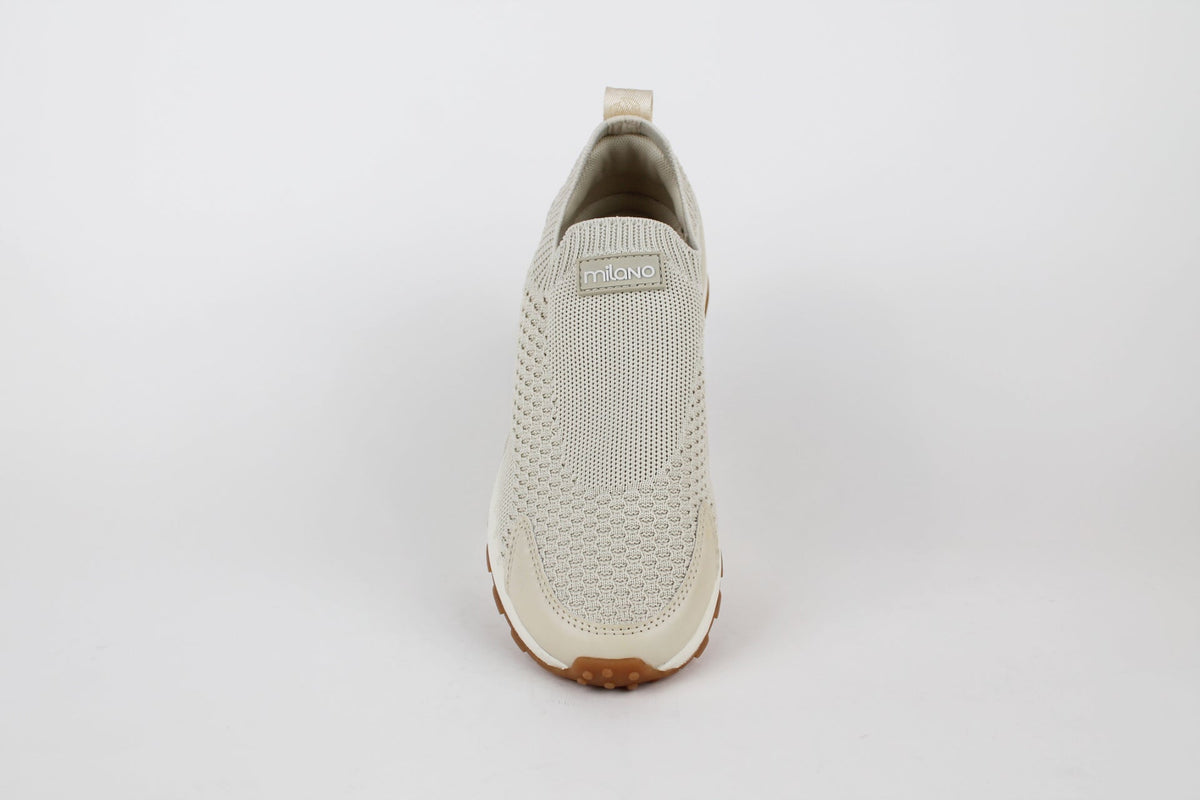 This sleek and modern unisex sneaker offers a perfect blend of comfort and style. The design features a breathable knit upper for a comfortable, sock-like fit, accented with smooth panels. Built on a stylishly sculpted, off-white platform sole, this slip-on shoe provides both an elevated look and superb comfort. Its easy on-and-off design and rugged outsole make it the perfect choice for anyone looking to add a sporty yet sophisticated touch to their everyday look.