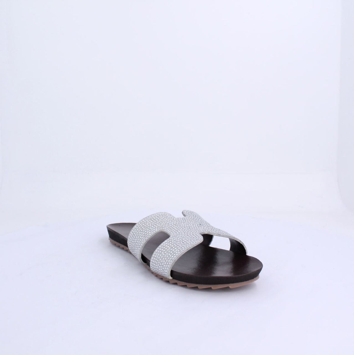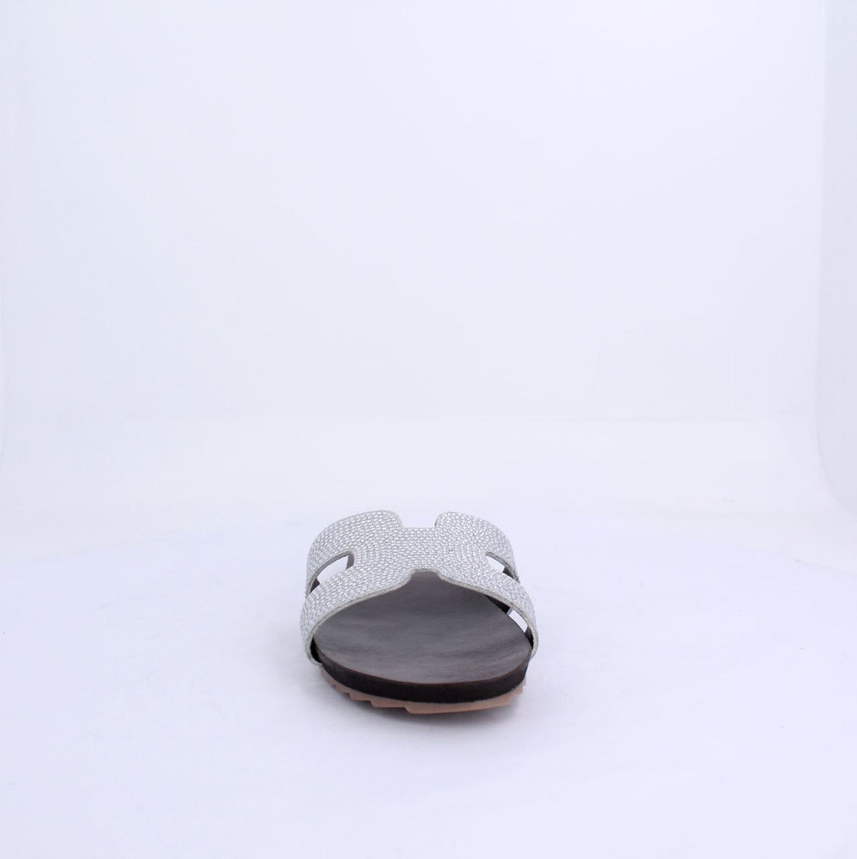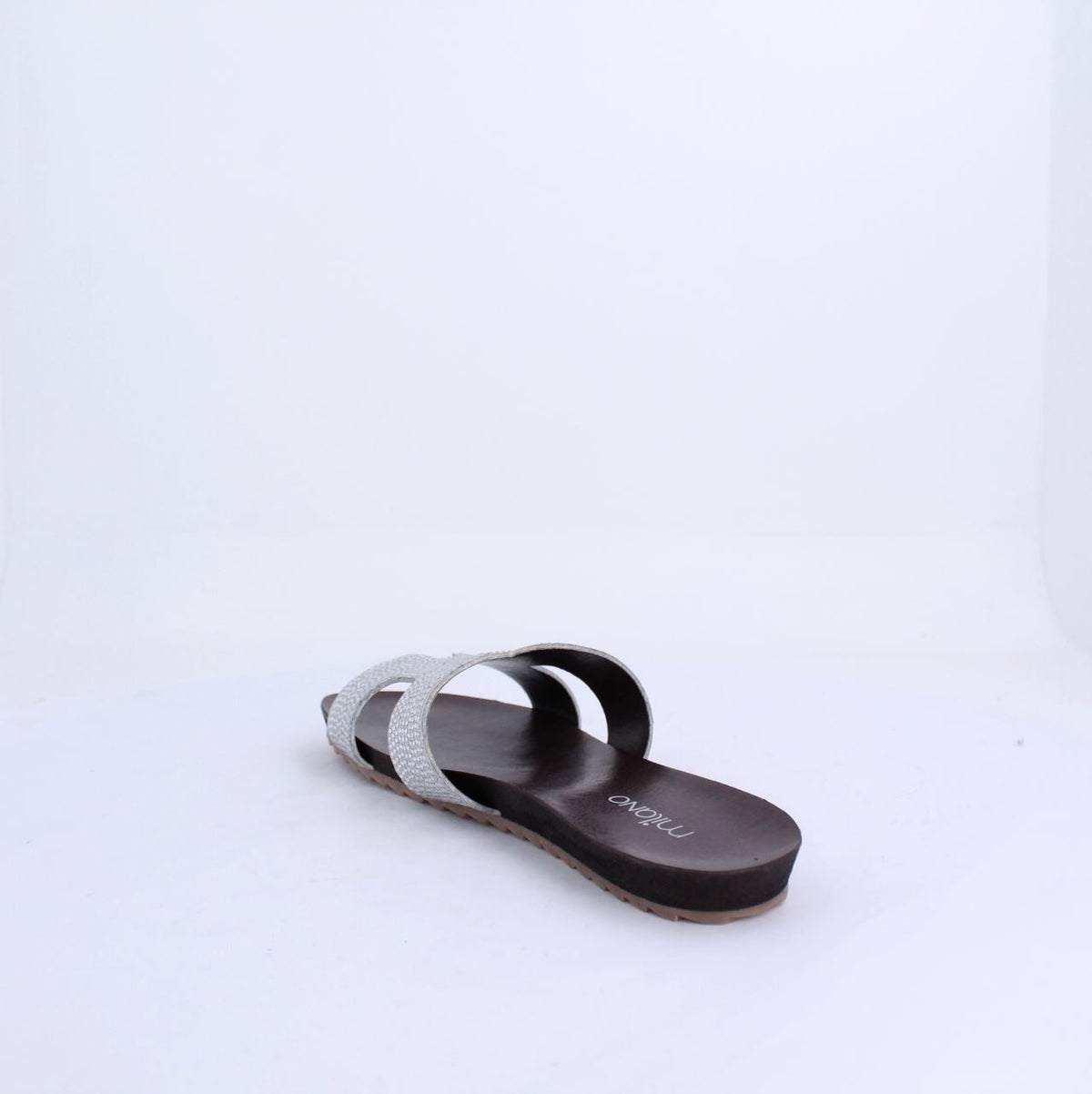 A flat sandal with a minimalist and chic design.The open-toe, slip-on design makes it perfect for casual wear, especially in warm weather. The simple yet elegant construction ensures versatility, pairing well with various outfits, from summer dresses to casual jeans. The overall aesthetic is modern and understated, ideal for a relaxed yet fashionable look.
