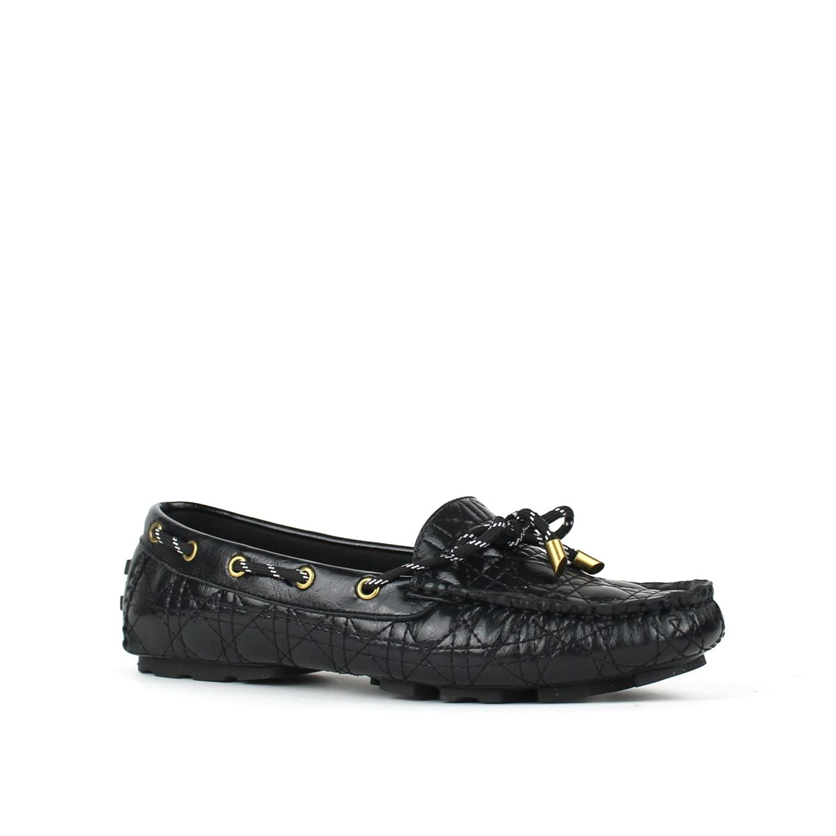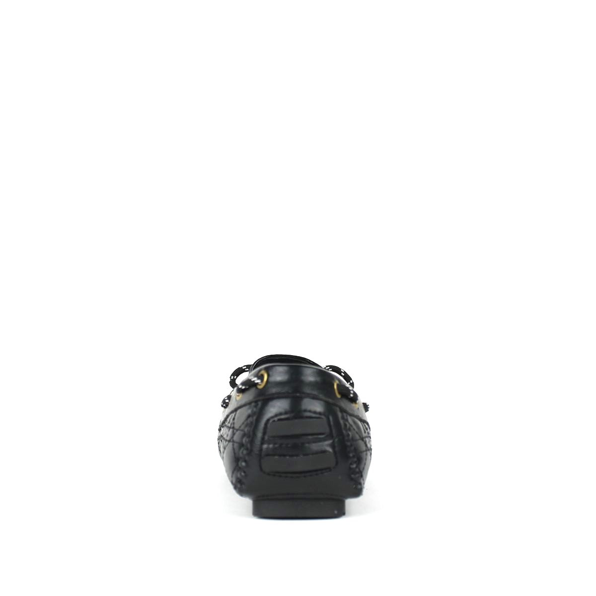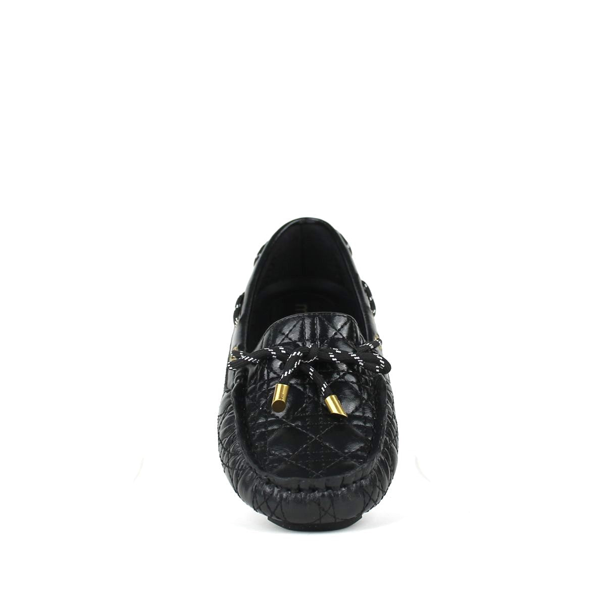 These stylish driving loafers are a sophisticated and comfortable choice for any occasion. They feature a quilted embossed texture on the upper for a distinctive look. A classic lace-up bow and laces that wrap around the collar through elegant gold-toned eyelets add a refined touch. The flexible sole provides excellent grip and ensures all-day comfort.