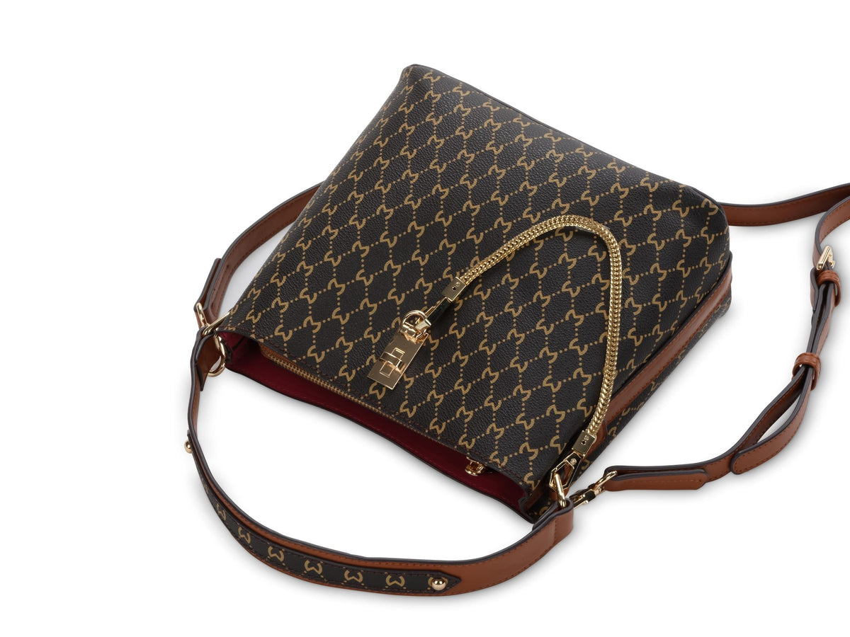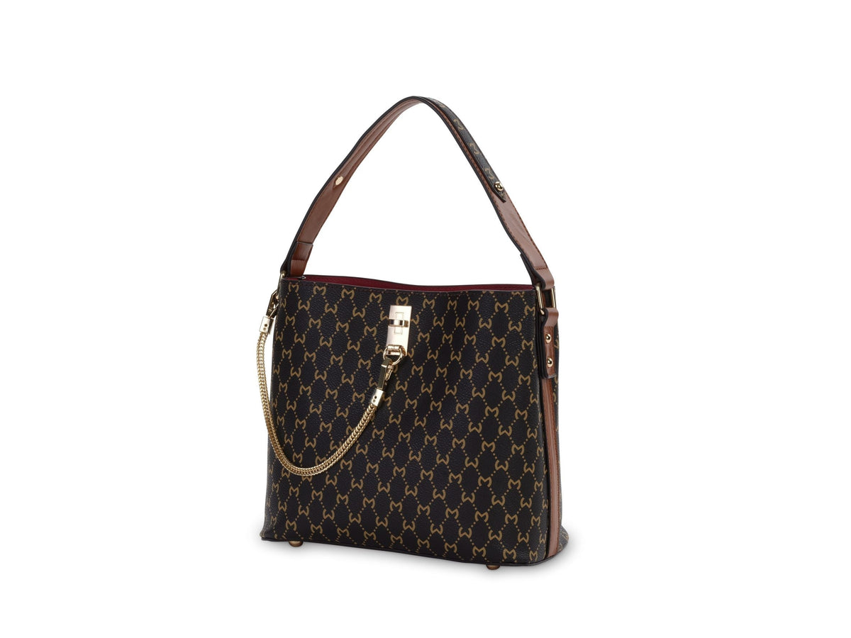 A pragmatic yet statement-making accessory, our Milena Hobois an instant icon. Crafted from Signature-monogram faux leather, it features a polished chain-link pendant for decorative appeal. Its compartmented interior will easily hold a day‰۪s worth of essentials.