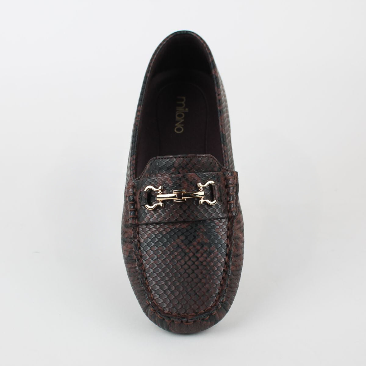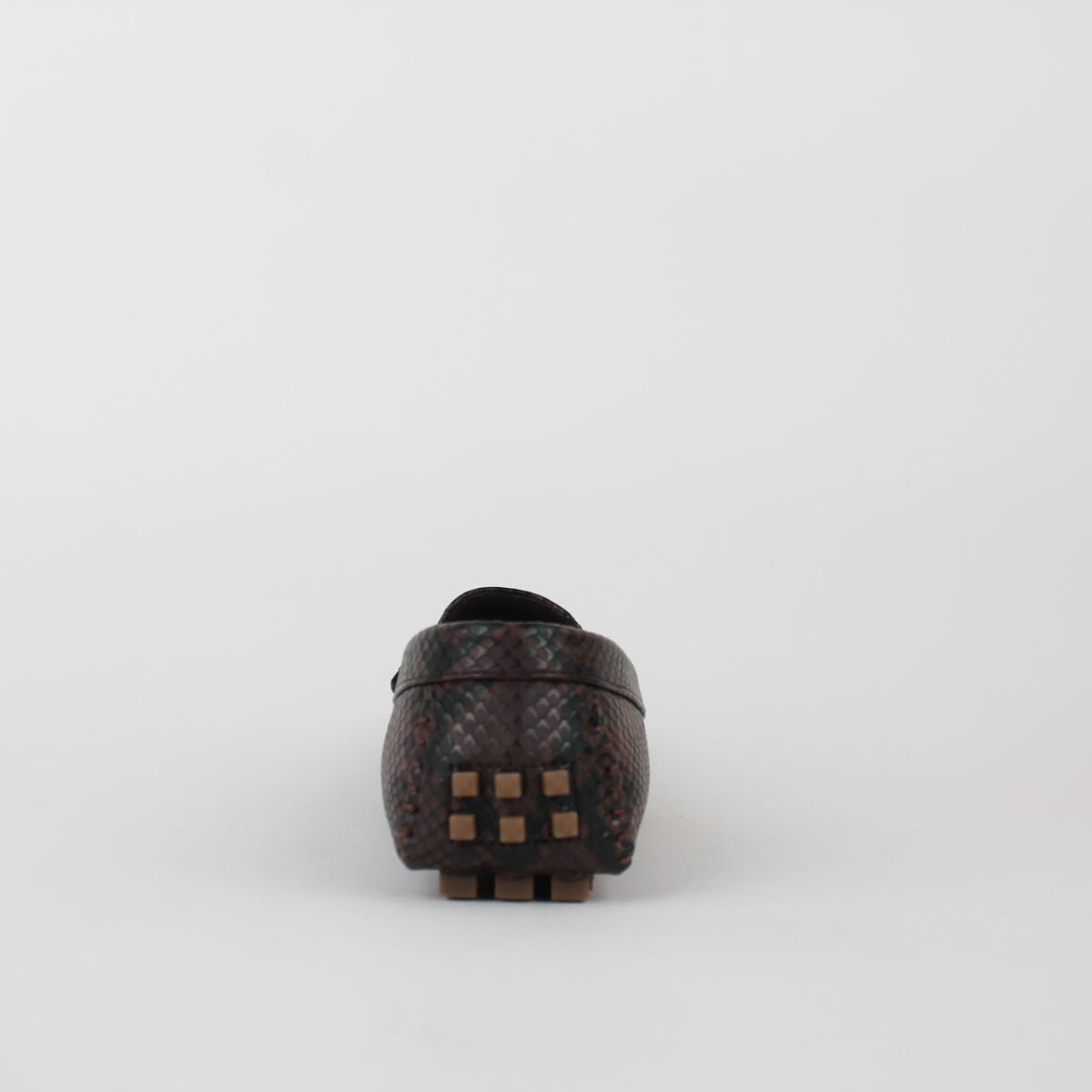 Make a statement with our sophisticated driving mocs, featuring a captivating dark snake-embossed texture. These luxurious loafers combine classic comfort with an exotic edge, elevated by polished gold-tone hardware. The flexible driving sole ensures grip and ease, making them perfect for adding an unexpected, stylish flair to any ensemble, from smart casual to evening chic.