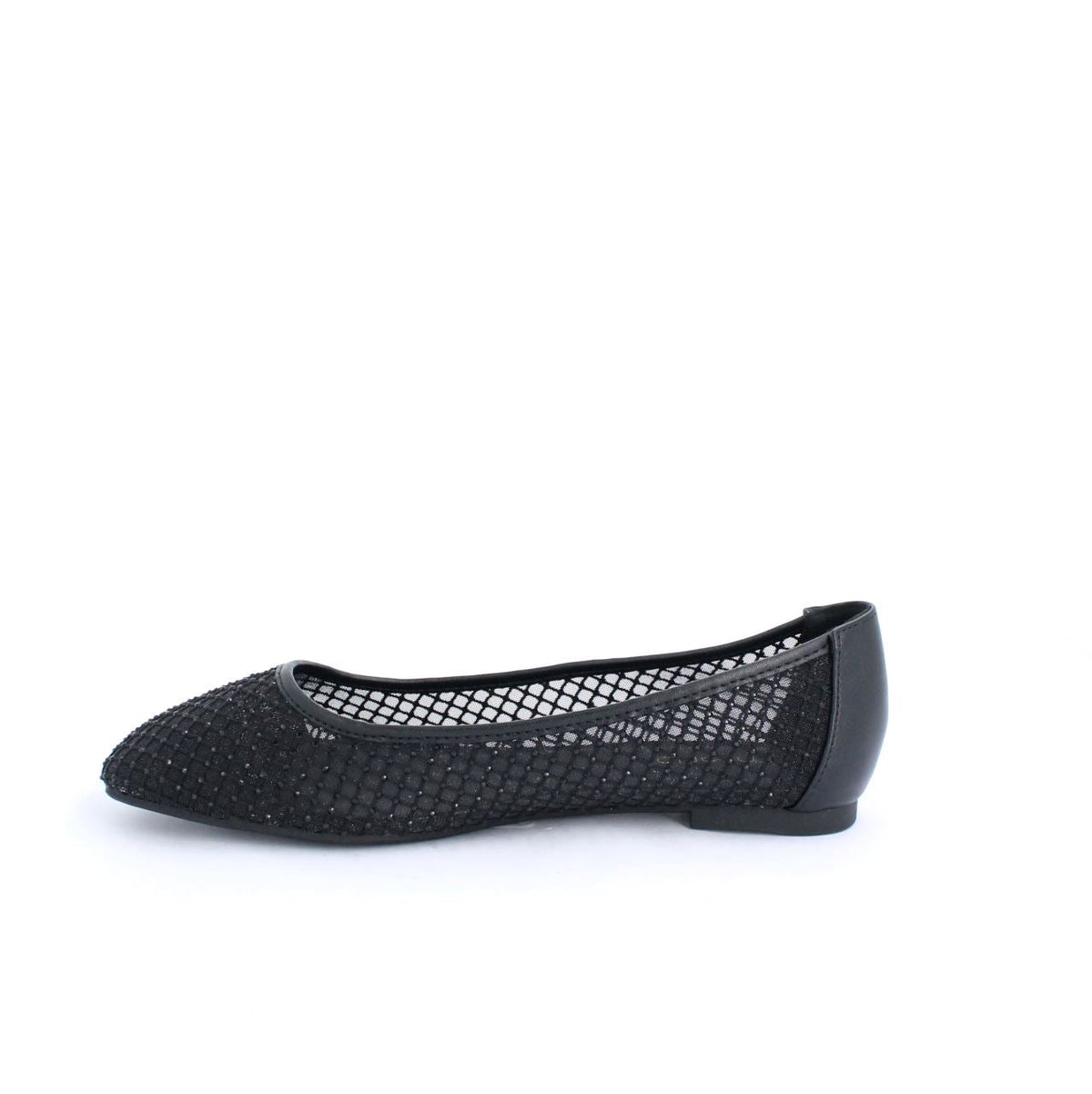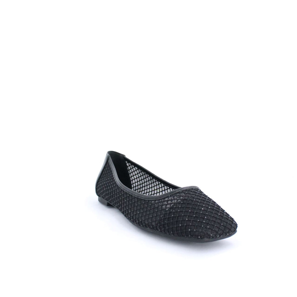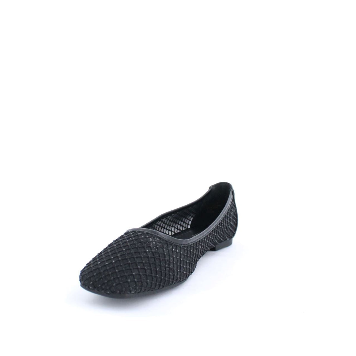 A ballet flat with a mesh design and subtle shimmer detailing. Perfect for casual or semi-formal wear, combining elegance and comfort for everyday use.
