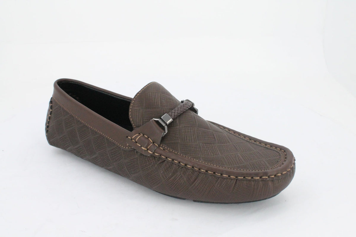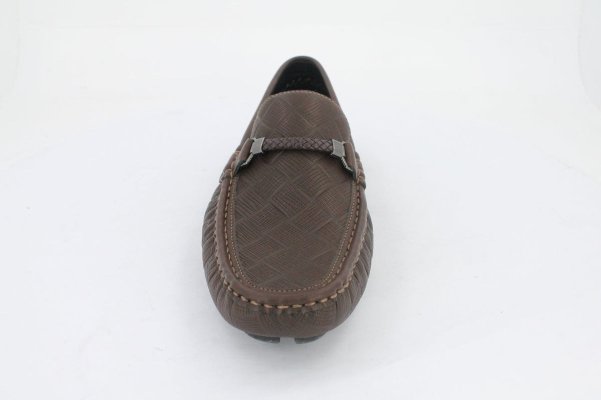 Classic comfort meets artisanal detail in this stylish men’s moccasin, designed for effortless everyday wear. The upper features a richly textured material—adding depth and character—while the standout braided saddle trim across the vamp brings a handcrafted, elevated touch to this timeless silhouette. Perfect for smart-casual dressing, this moccasin offers a relaxed yet refined look that pairs seamlessly with jeans, chinos, or even tailored shorts. The style offers a cushioned insole for all-day wear alongside a flexible rubber outsole for grip and durability.