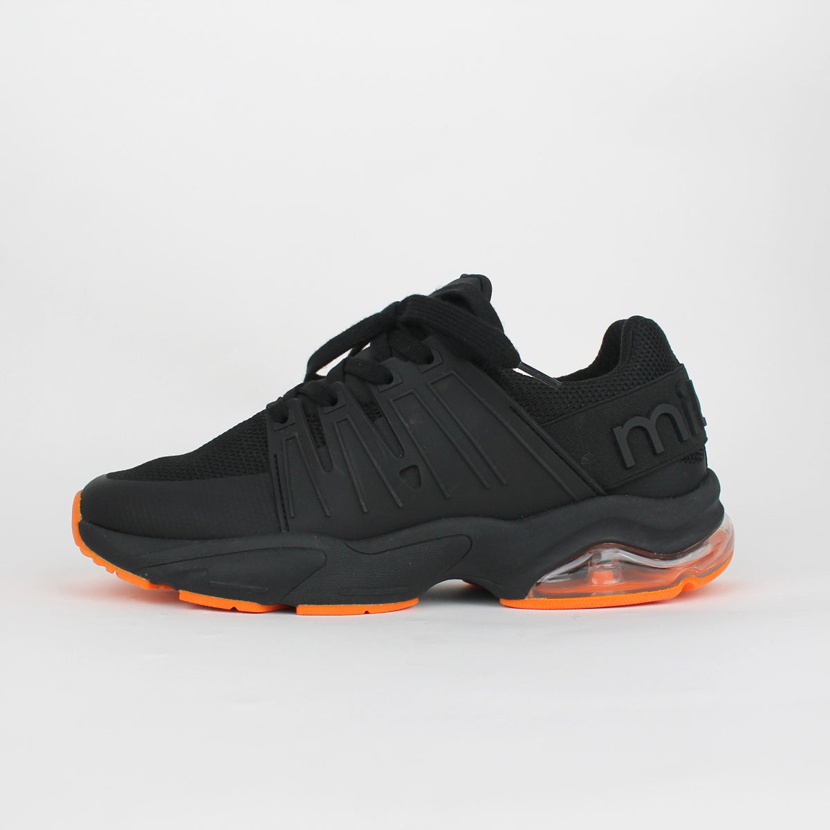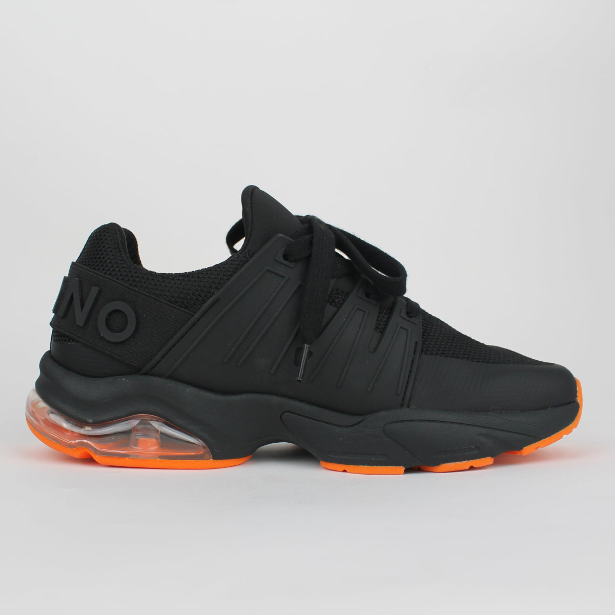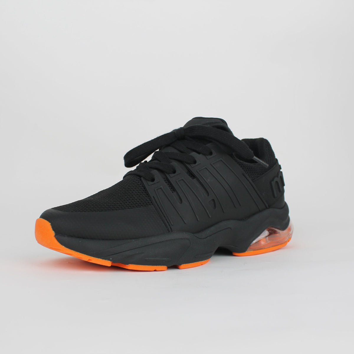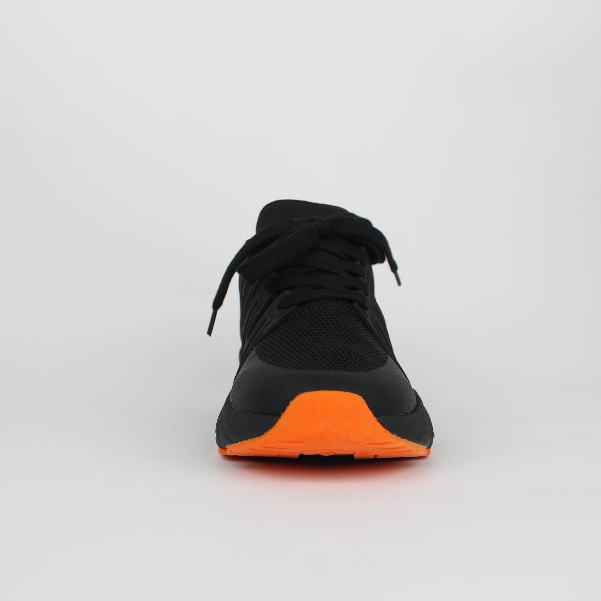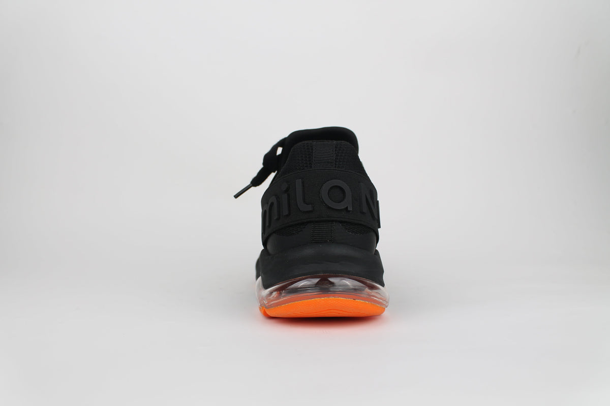 Make a statement with every step in this dynamic men’s sports shoe, which has been designed for performance and style. Featuring a sleek knit black upper and a vibrant orange outsole, this shoe delivers both energy and edge—perfect for the active lifestyle. The breathable mesh material in classic black is an easy practical material for this style. The striking orange rubber outsole speaks a for bold contrast and reliable traction thus bringing in the heat with every stride.