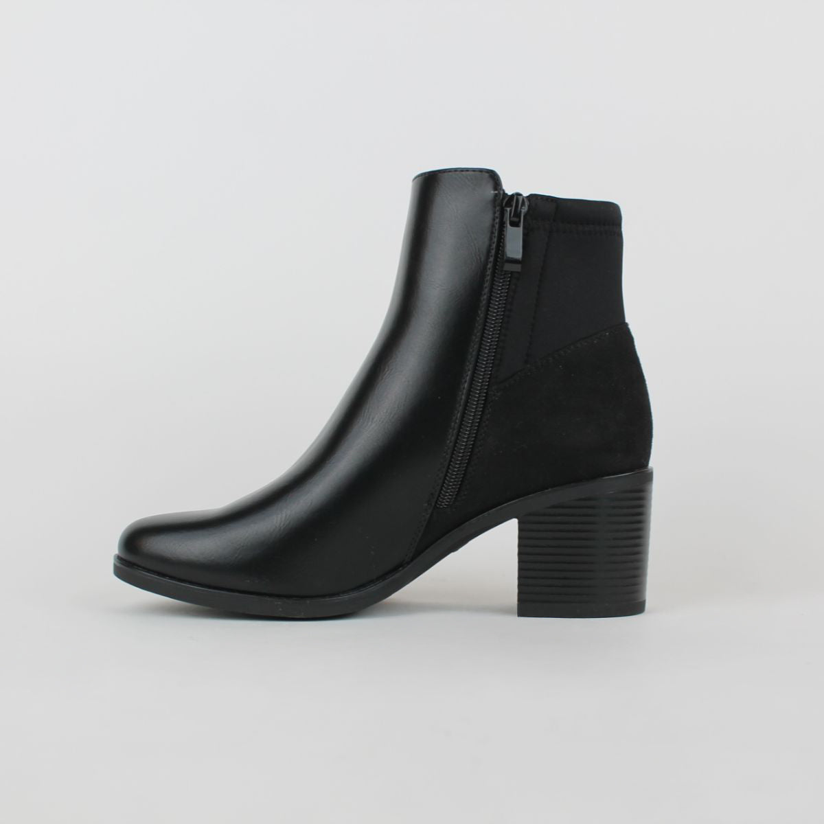 Meet your new go-to boot for the season. Our Black Heeled Ankle Boot is designed for both style and comfort. The sturdy, stacked heel provides stable lift, while the elastic side panels allow for easy on-and-off. The classic black finish makes this boot a perfect match for any outfit, offering endless styling possibilities for work, weekends, and everything in between.
